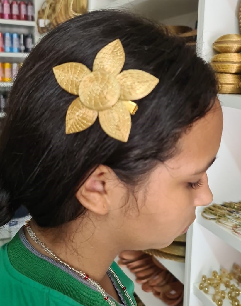 Barrette ajustable finement tressée en or végétal (capim dourado).