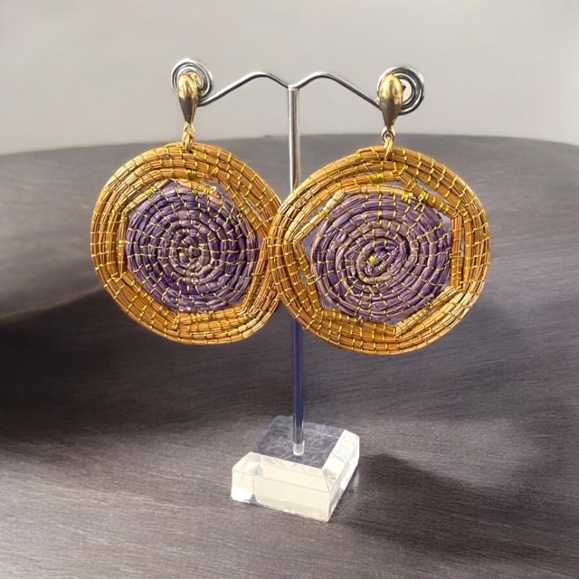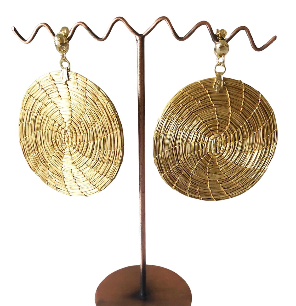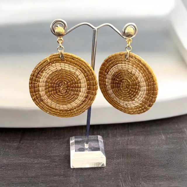 Paire de boucles d´oreilles en or végétal -finement tressée.