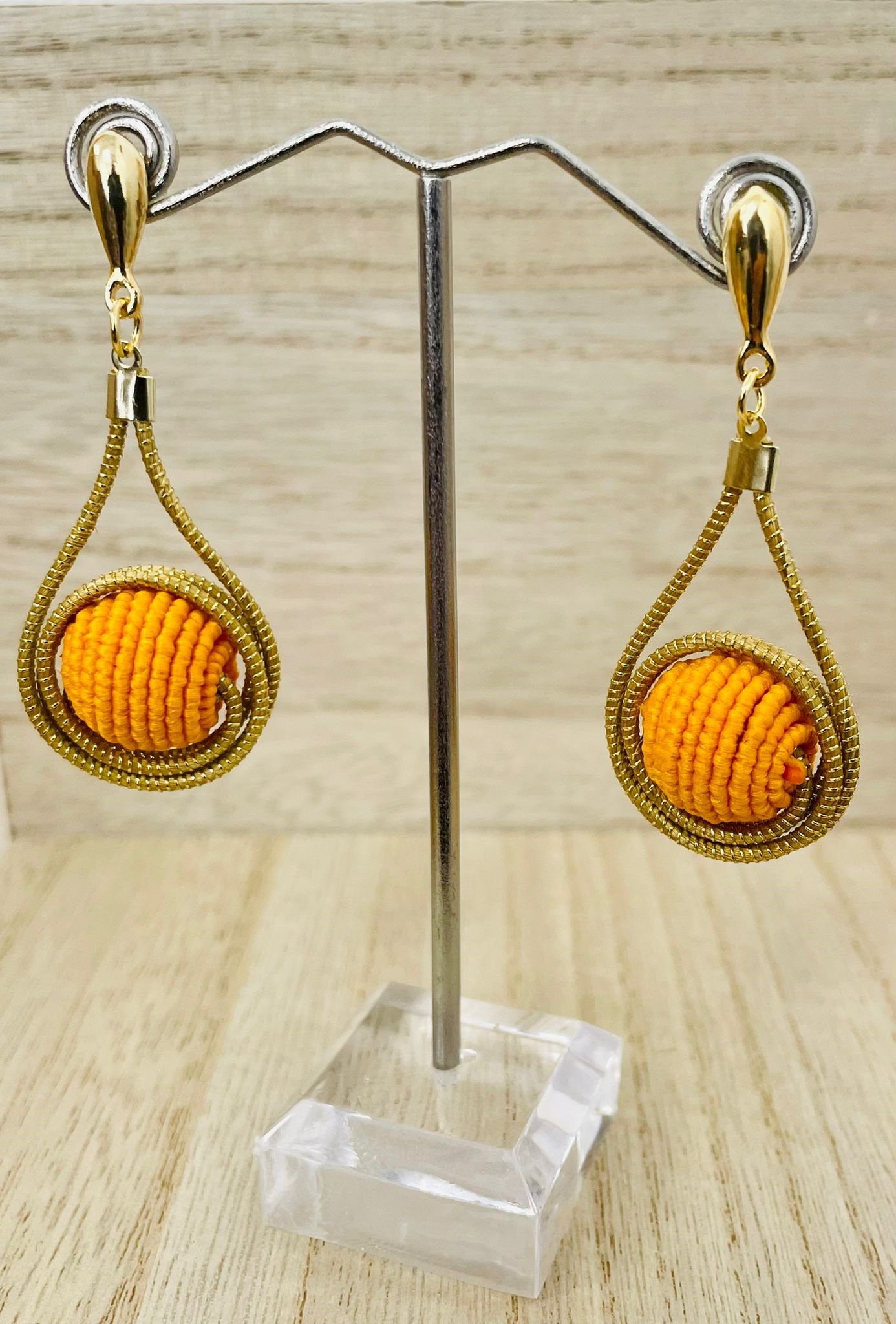 Paire boucles d´oreilles finement tissée en or végétal (capim dourado).