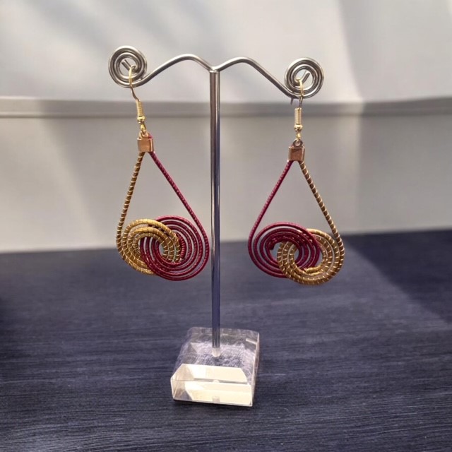 Boucles d’oreilles tressée en or végétal (Capim Dourado) avec fil de soie buriti coloré.