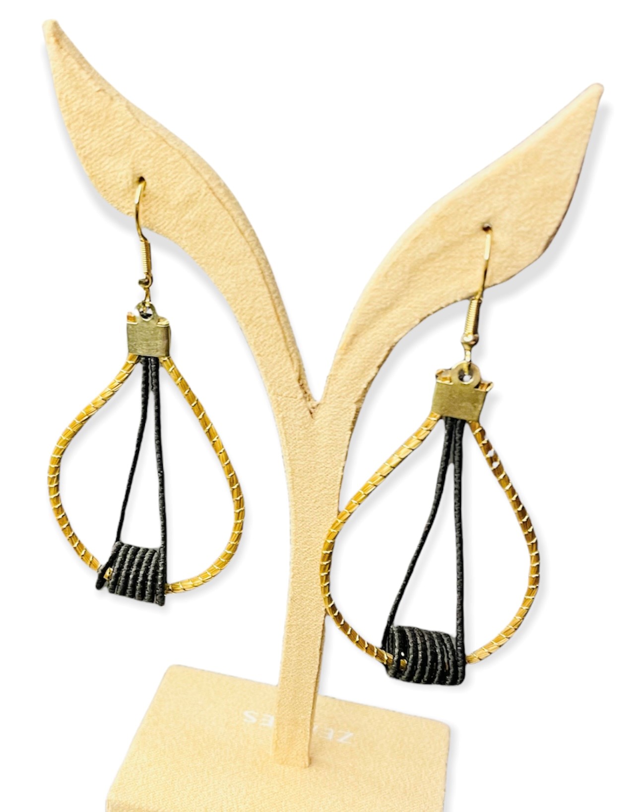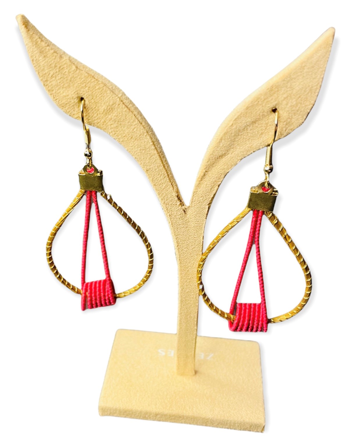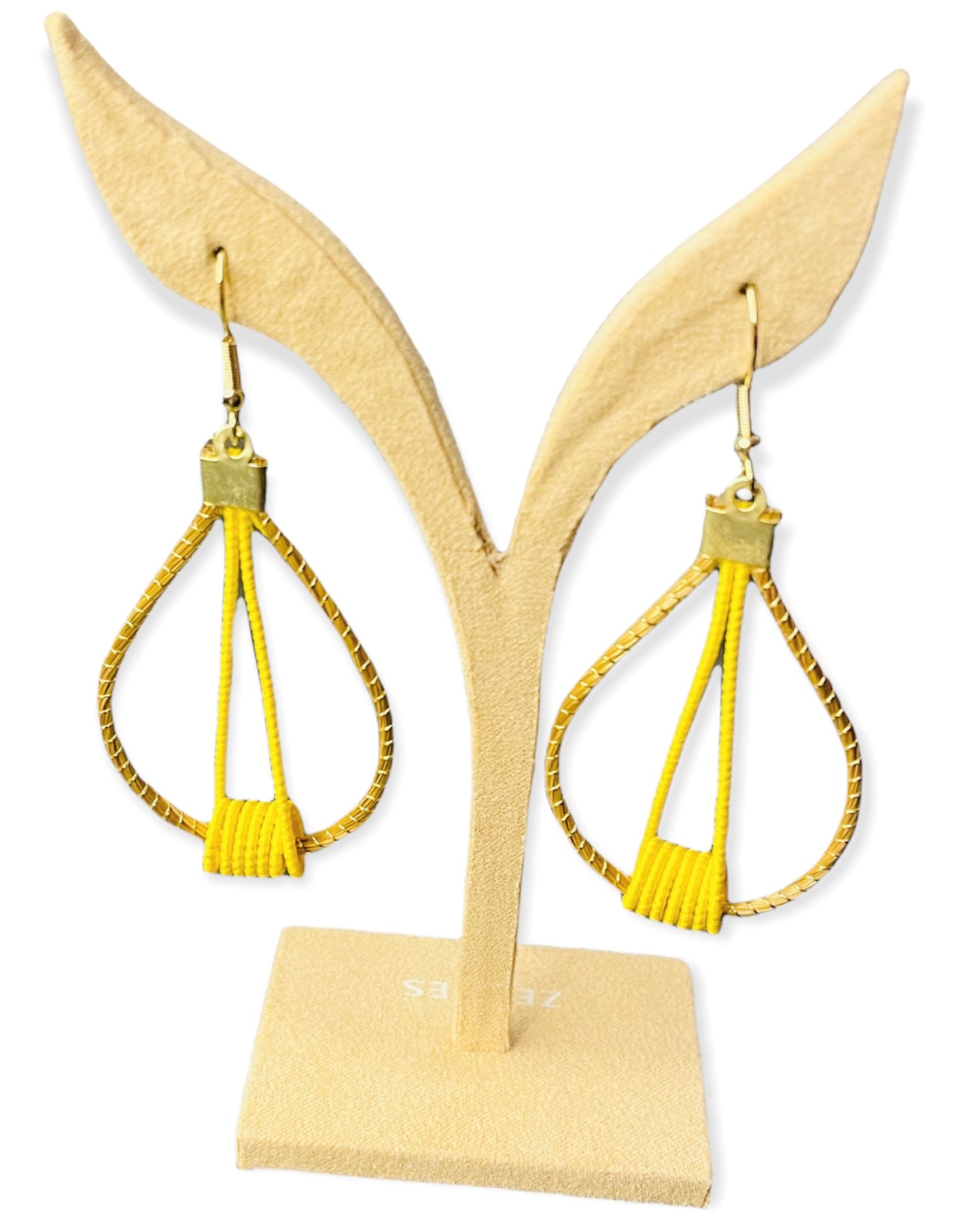 Paire boucles d´oreilles en or végétal (capim dourado) et soie de buriti.