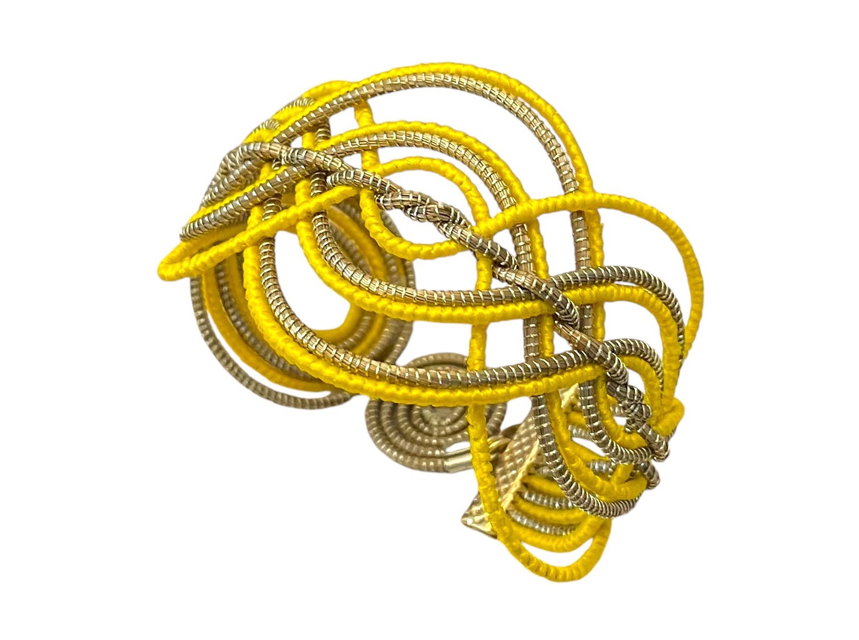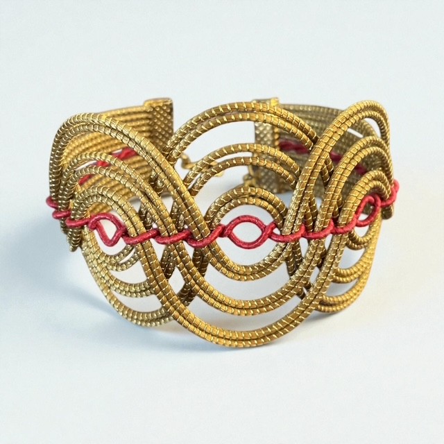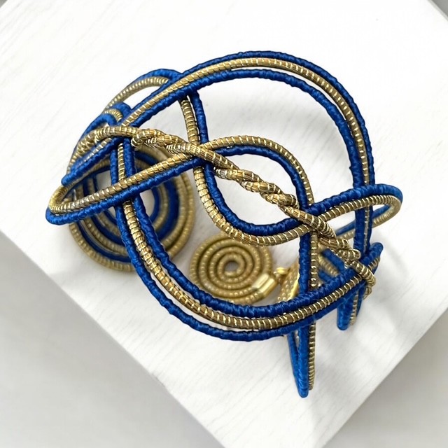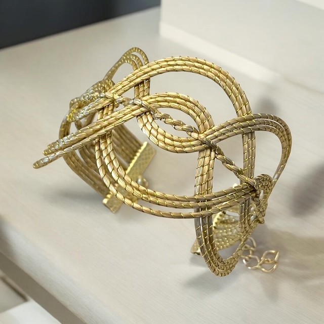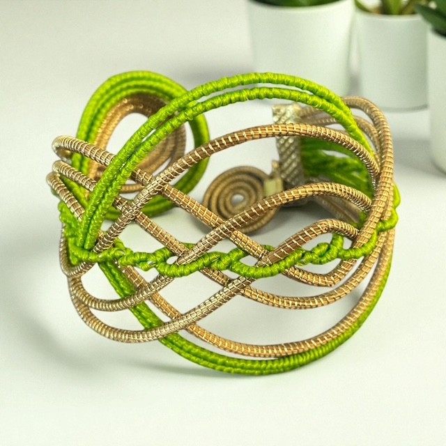 Manchette tressée en or végétal (capim dourado) et fil de soie de buriti.
