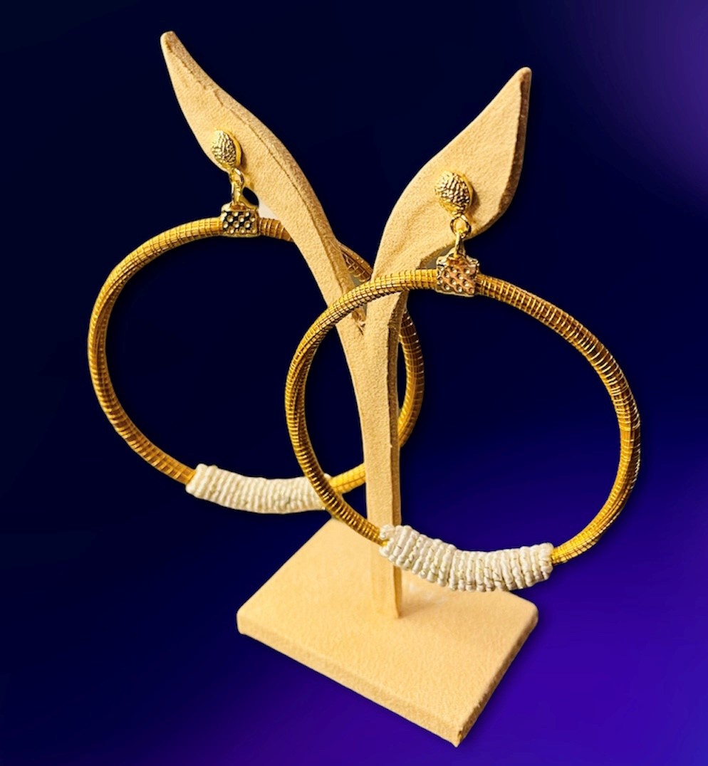 Pair of earrings finely handwoven in golden grass (capim dourado).